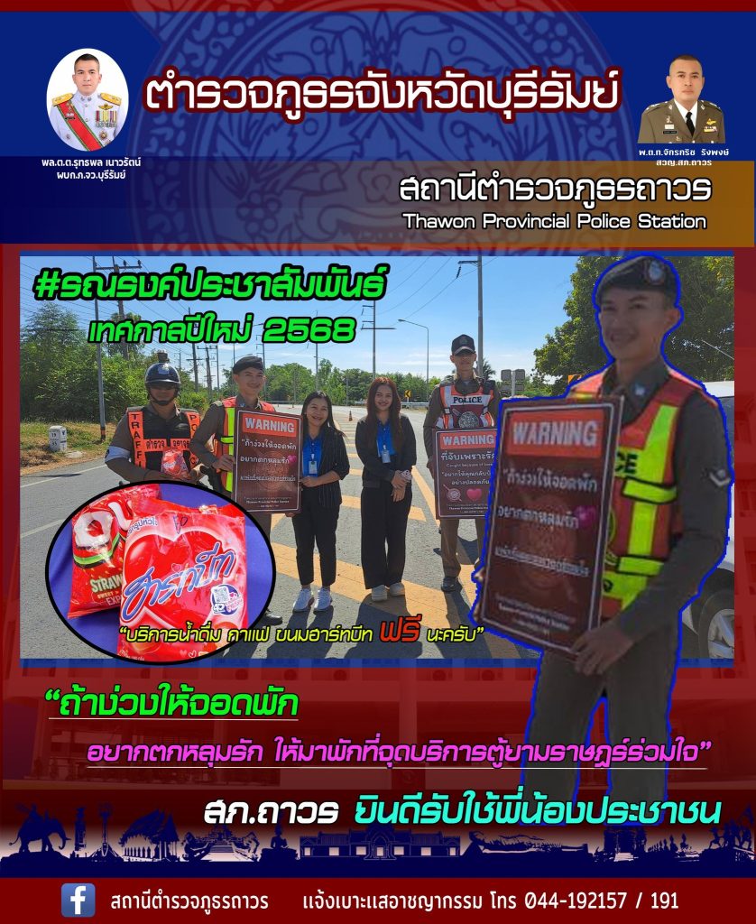“ถ้าง่วงให้จอดพัก ถ้าอยากตกหลุมรัก ให้มาพักที่จุดบริการตู้ยามราษฎร์ร่วมใจ”