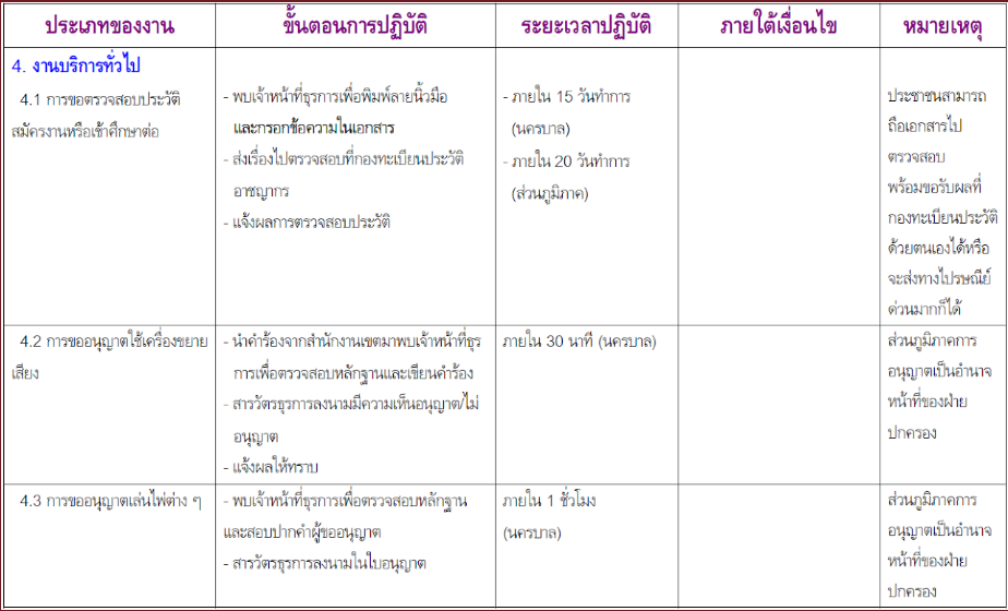 แสดงแถบเมนู “คู่มือประชาชน ” และ “มาตรฐาน ระยะเวลาให้บริการประชาชน” ไว้ที่หน้าหลักของเว็บไซต์ เพื่อเชื่อมโยงมายังหน้าปัจจุบัน